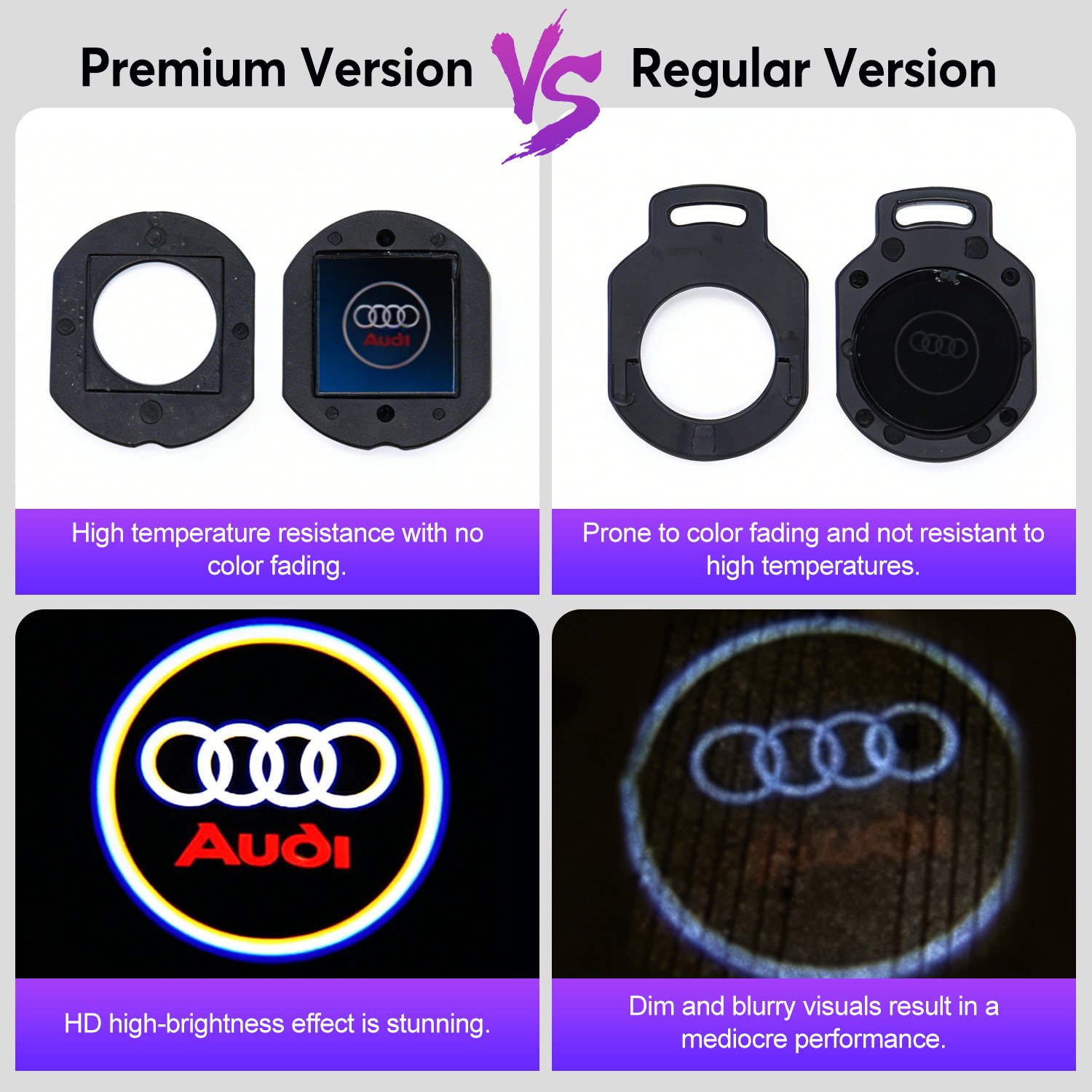 Bought two pairs. Top quality, much heavier than the entry lights it replaces because it comes with a large aluminum heat diffuser. Easy to assemble with a screwdriver only. The light is very bright and even, can be seen clearly even in daytime. At night it just can’t be missed. So it also enhances safety for cars and cycles coming from behind when the door is opened at the roadside. A bit pricy but it’s ok when considering the quality and that it would last for many years, maybe longer than the car itself! All in all, it’s a must-have for Audi owners. I’m happy with it.